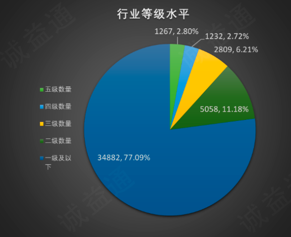 從企業(yè)類型及規(guī)模來看,中小微企業(yè)數(shù)量占比達(dá)到88.64%,全國一級及以下水平的企業(yè)中有95.09%是中小微企業(yè),國有大型企業(yè)的智能制造能力成熟度較高。在化工行業(yè),尤其是精細(xì)化工行業(yè),中小微民營企業(yè)數(shù)量占比較高,這類企業(yè)在人員、技術(shù)、資源和制造環(huán)節(jié)都存在較大的差距,制約著企業(yè)智能化轉(zhuǎn)型升級。