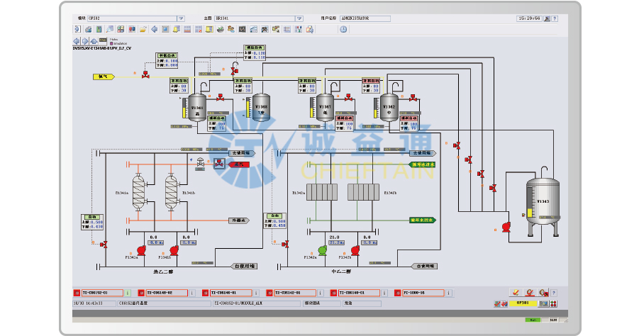 通過進料、溫度、壓力、液位、流量、回流比等精準控制實現溶媒回收的能量和物料的輸入和輸出平衡。