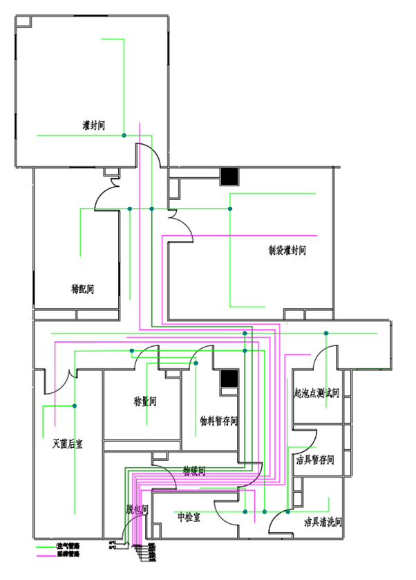 u 消毒空間:灌封間、稀配間、制袋灌封間、滅菌后室、稱量間、物料暫存間、物緩間、中檢室、起泡點測試間、潔具暫存間、潔具清洗間、走廊等;