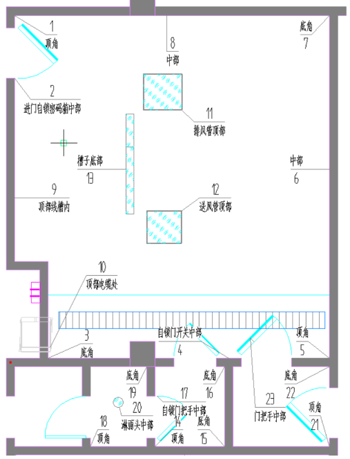 u 消毒結果:在模擬實驗室某整體循環系統終末消毒情況下,對整體空間進行消毒測試,采用枯草黑色變種芽孢桿菌進行消毒測試效果驗證,所有挑戰位點的生物指示劑全部被殺滅,滿足實驗室運行的需求。